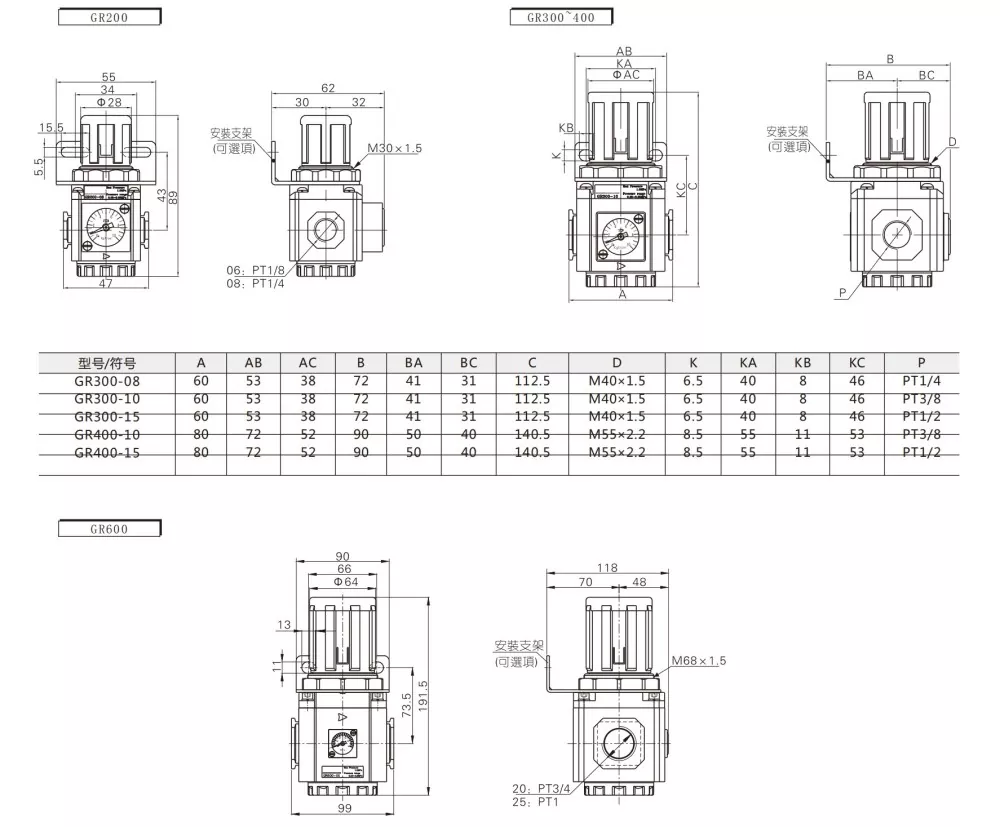 Airtac tipi GR basınç regülatörü Ürün Özellikleri: