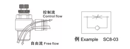 İşlevsel sembollerden, hem egzoz hem de giriş akış kontrol valflerinin tek yönlü kısma valfleri olduğunu, akışı yalnızca tek yönde kontrol ederken ters hava akışının serbestçe geçmesine izin verdiğini görebiliriz. Çift etkili silindirlerde silindir hareket stabilitesini artırmak amacıyla egzoz kısma valfleri tercih edilir. Hava beslemesi olmadığında genellikle uzatma veya geri çekme için bir yay kullanan tek etkili silindirler için, gazın çalışma sırasında yay kuvvetini aşması gerekir, bu nedenle giriş kısma valfleri hız kontrolü için uygundur.