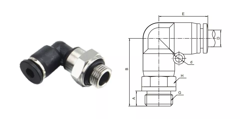 PL-G erkek dirsek itme boru bağlantısı 90 derecelik bir dirsek konnektörüdür ve kapalı boşluklarda kullanım için ideal olan G ipliği veya boru yeniden yönlendirmesinin gerekli olduğu yerlerde. Hava veya sıvı sızıntısını önlemek için sızdırmazlık halkaları ile donatılmıştır.