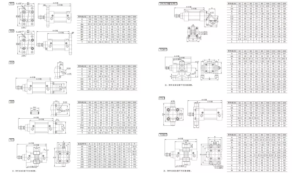 SU pnömatik silindir ve SI hava silindiri Birbiriyle değiştirilemez ve aksesuarlar (CA /CB ayak destekleri,SID,TC-M, mafsal başlıkları) uyumlu değil