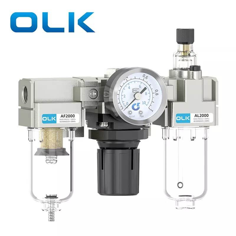 SMC Tip AC FRL Ünitesi (Filtre-Regülatör-Yağlayıcı), hava kaynaklı filtrelemeyi, basınç azaltma ve düzenlemeyi ve yağlama işlemini entegre eden pnömatik bir temel bileşendir. Pnömatik sistemler için temiz, stabil ve yağlanmış basınçlı hava sağlayarak pnömatik bileşenlerin ömrünü uzatır ve sistem stabilitesini artırır. OLK AC Serisi FRL Ünitesi, modern pnömatik sistemlerin temel "koruyucusu" görevi görür.