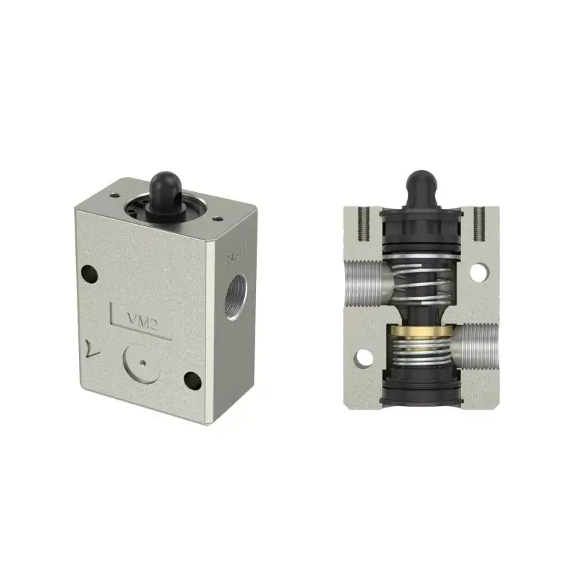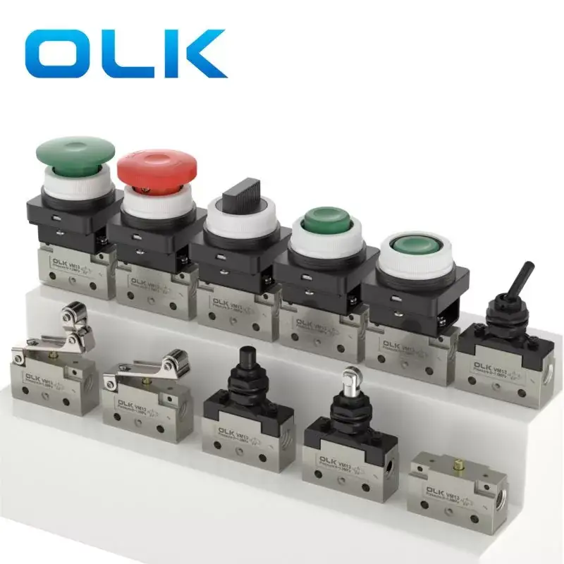 OULEIKAI (OLK) VM Serisi SMC tipi mekanik düğme valfleri iki fonksiyonel tipte mevcuttur: 2 pozisyon 2-yollu ve 2 pozisyon 3 yollu. Hava giriş ve çıkış bağlantı noktaları iki arayüz tipinde gelir: yan ve alt. Portlar için iplik boyutları arasında M5, G1/8 ve PT1/4 bulunur.